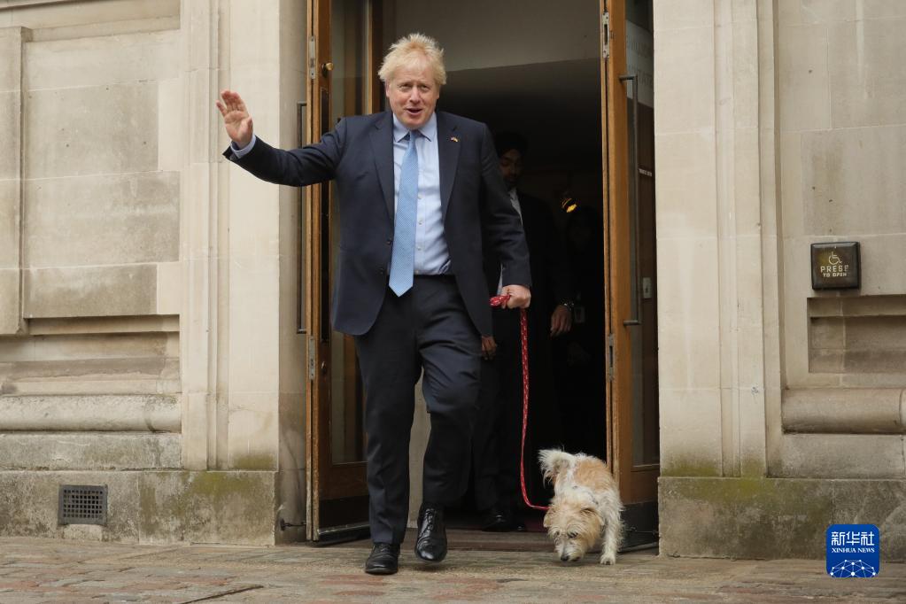5月5日,英国首相、保守党领袖鲍里斯·约翰逊在伦敦一家投票站投票后准备离开。