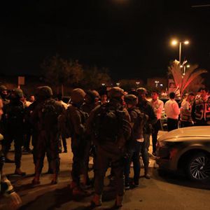 5月5日,以色列救援人员在以中部城市埃拉德袭击现场工作。