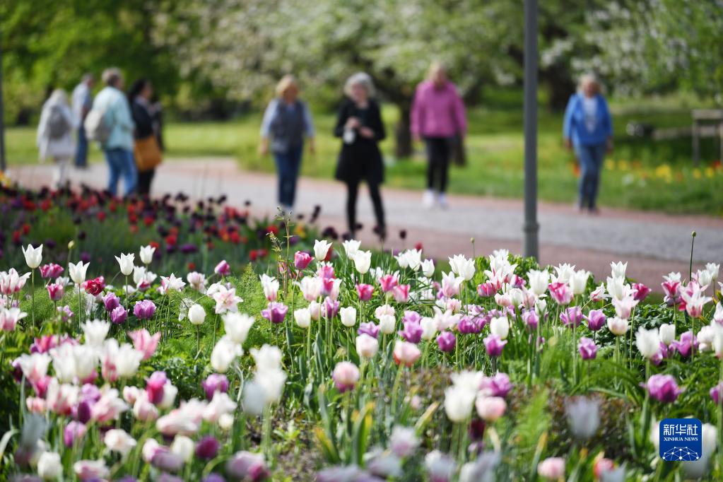 近日,德国柏林天气持续晴好,位于柏林南部的布里茨花园鲜花盛开,绿草如茵,成为人们休闲好去处。