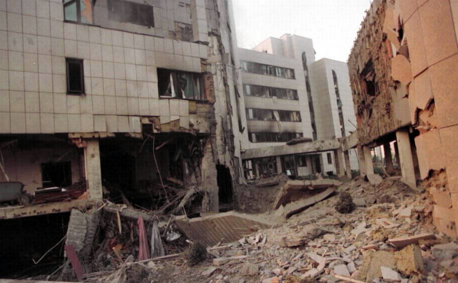 图为坐落在中国驻南联盟大使馆院内的大使官邸被北约导弹毁坏后的惨状。新华社记者黄文摄