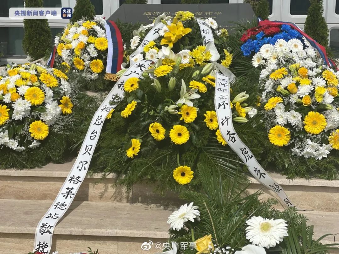 在我驻南联盟使馆旧址前举行凭吊仪式