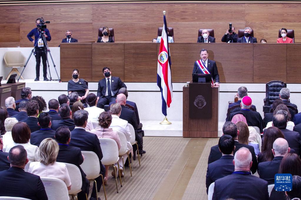 5月8日,哥斯达黎加当选总统罗德里戈·查韦斯在位于首都圣何塞的哥斯达黎加立法大会发表就职演讲。