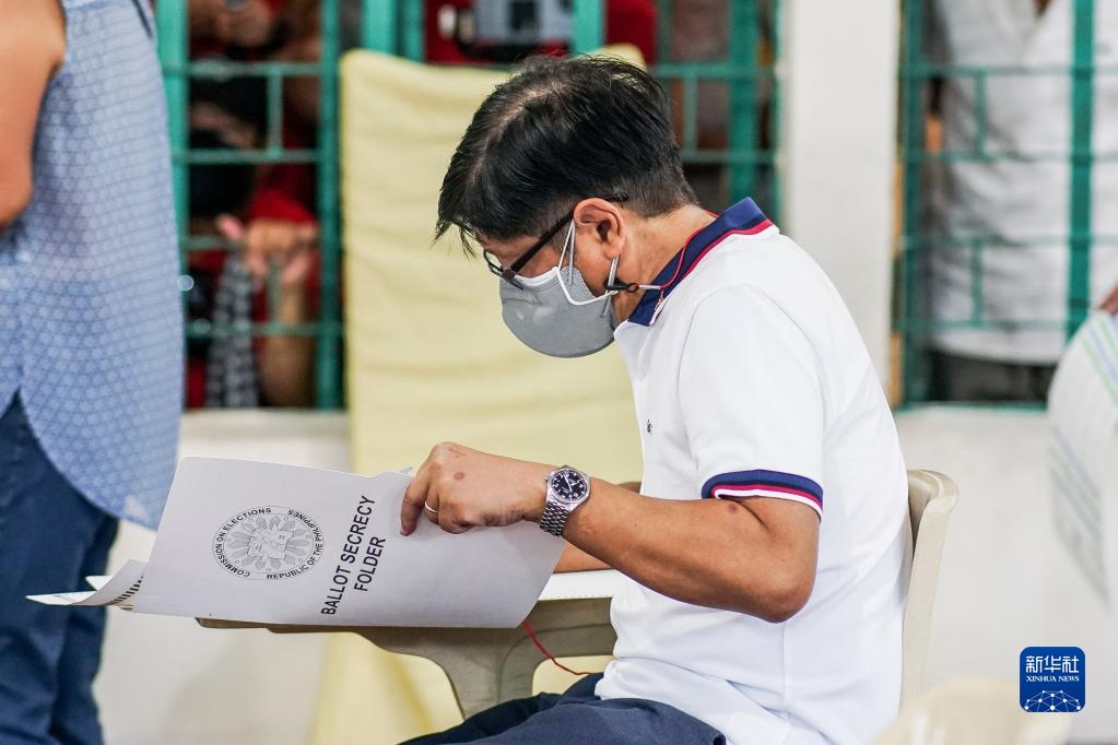 5月9日,菲律宾总统候选人小费迪南德·马科斯在菲律宾北伊罗戈省的一处投票站参加投票。