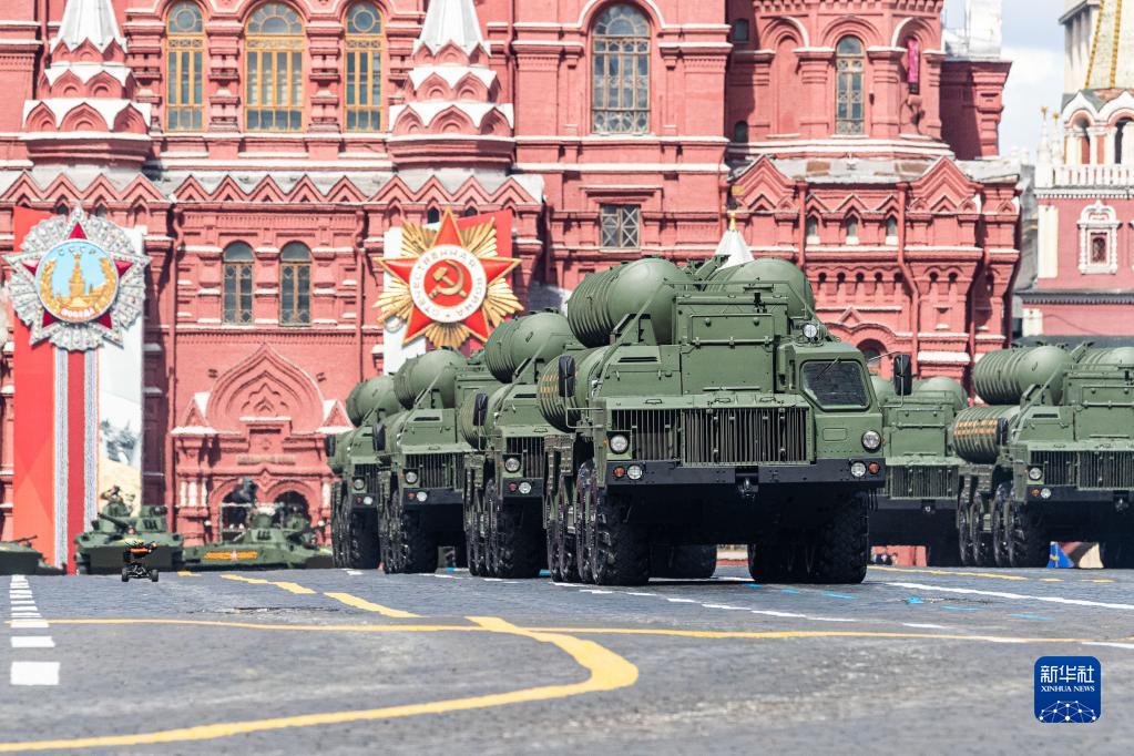 5月9日,在俄罗斯首都莫斯科,S-400防空导弹系统编队驶过红场。