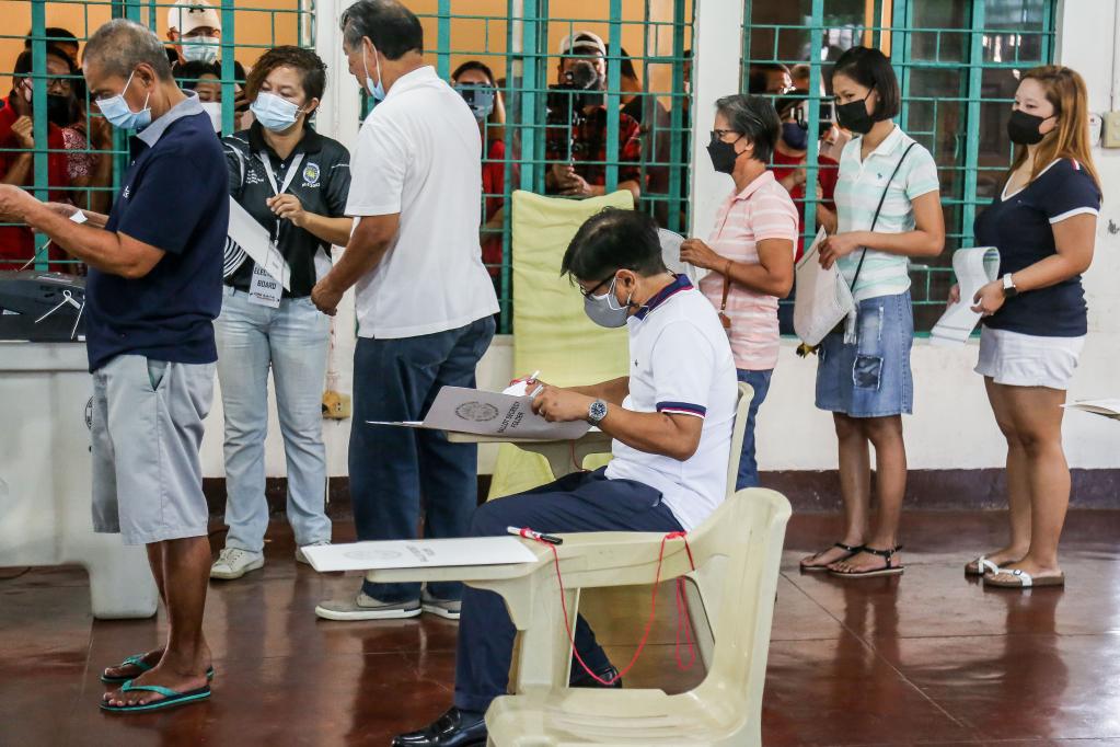 5月9日,小马科斯(右四)在菲律宾北伊罗戈省的一处投票站参加投票。新华社发