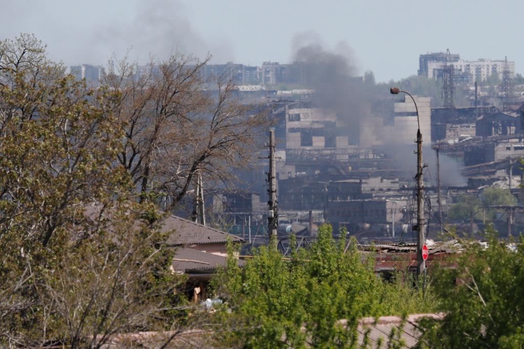 5月8日,浓烟从马里乌波尔市亚速钢铁厂升起。新华社发(维克托摄)
