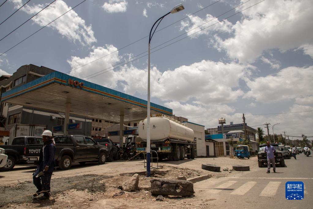 5月10日,车辆在埃塞俄比亚首都亚的斯亚贝巴一座加油站排队等待加油。