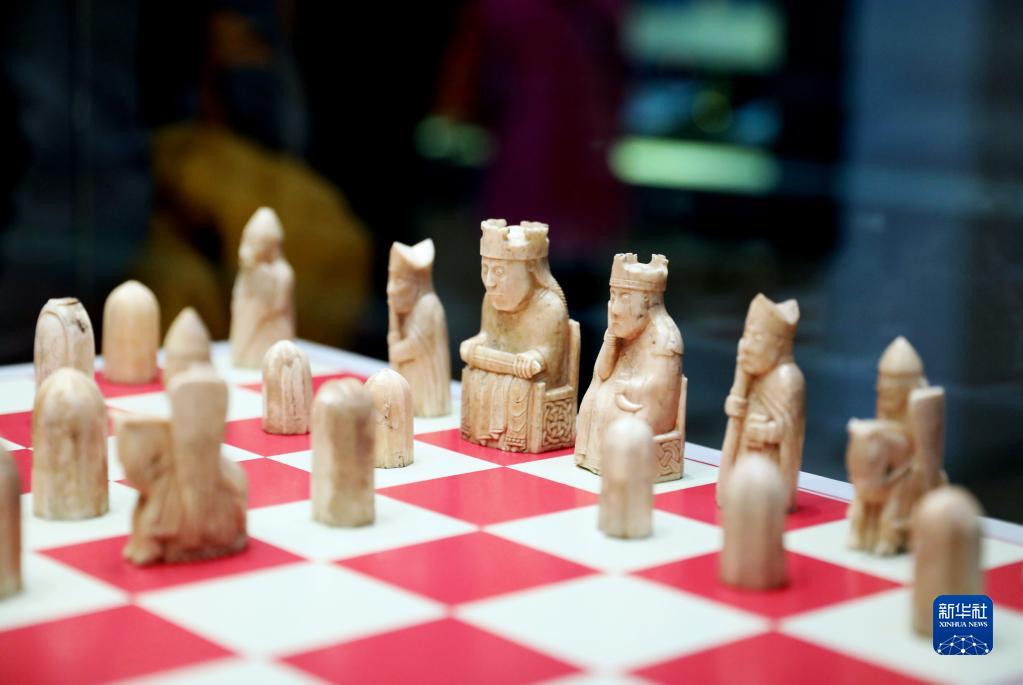 这是5月11日在英国伦敦大英博物馆拍摄的藏品刘易斯棋子。刘易斯棋子是在苏格兰的刘易斯岛发现的,棋子上的人物形象栩栩如生,各不相同。