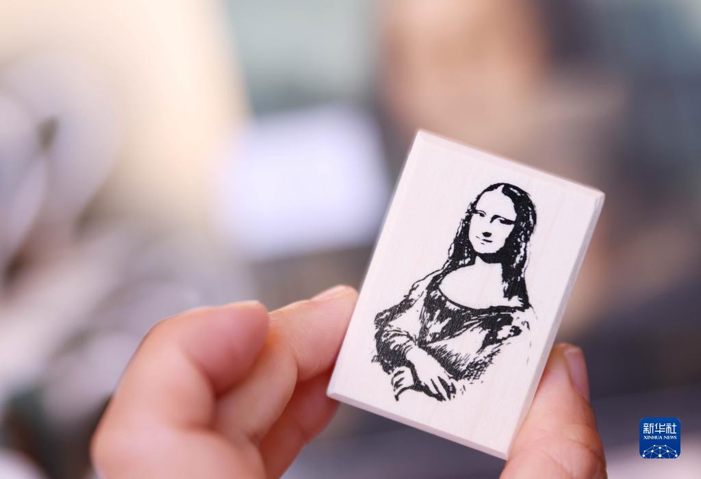 这是5月11日在法国巴黎卢浮宫官方纪念品店拍摄的有蒙娜丽莎图像的印章。