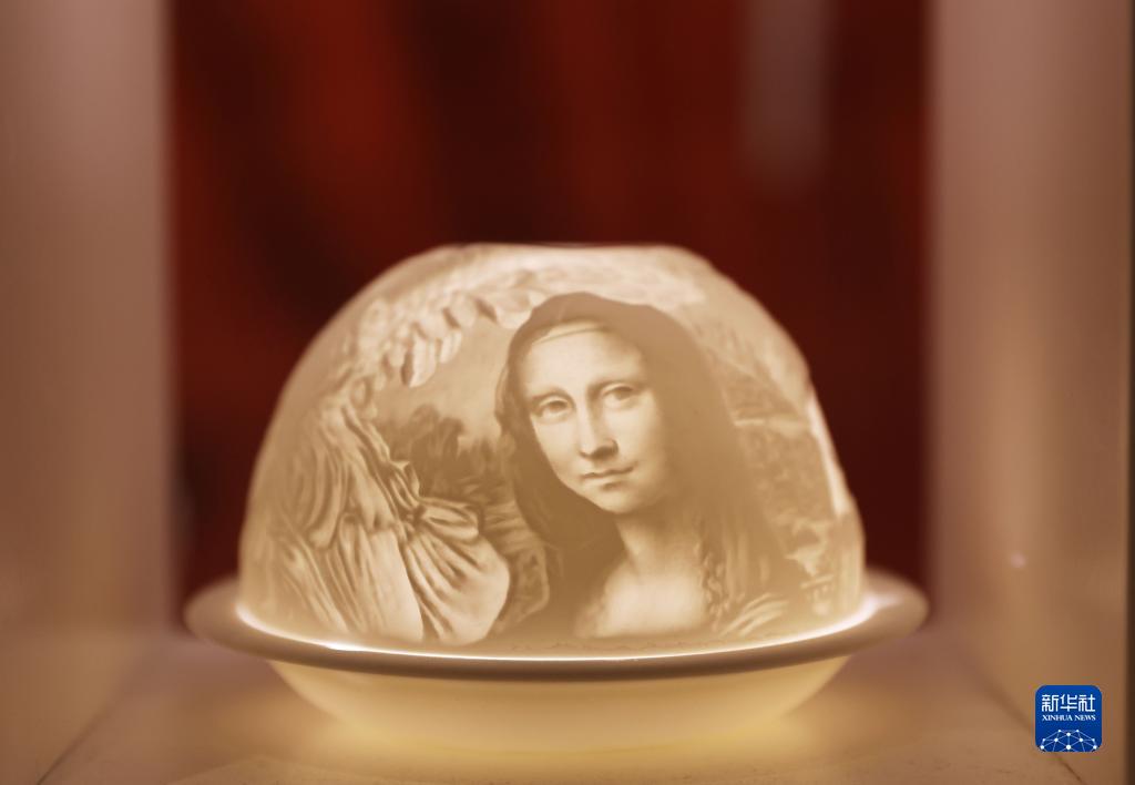 这是5月11日在法国巴黎卢浮宫官方纪念品店拍摄的带有蒙娜丽莎形象的瓷器。
