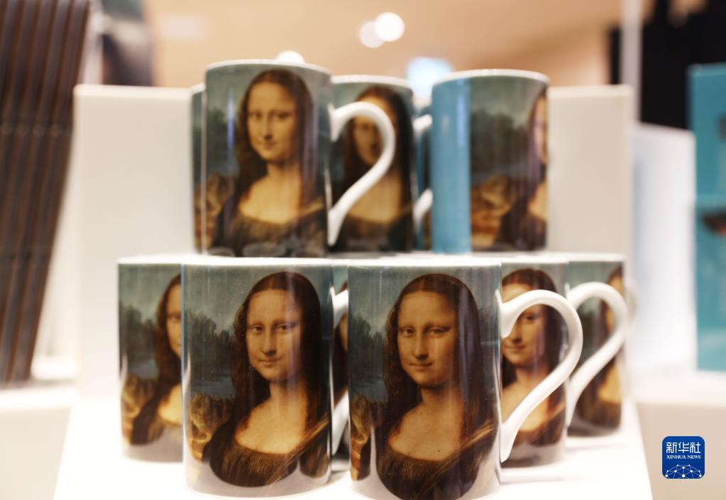 这是5月11日在法国巴黎卢浮宫官方纪念品店拍摄的印有蒙娜丽莎的马克杯。