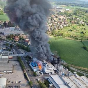 这是5月12日在斯洛文尼亚南部科切维市拍摄的发生爆炸的化工厂。