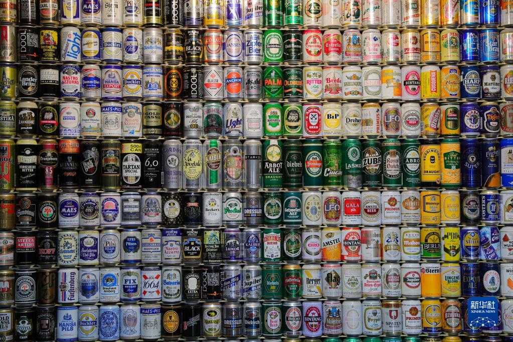 这是5月13日在比利时布鲁日的“啤酒体验”博物馆拍摄的展出的各种啤酒易拉罐。