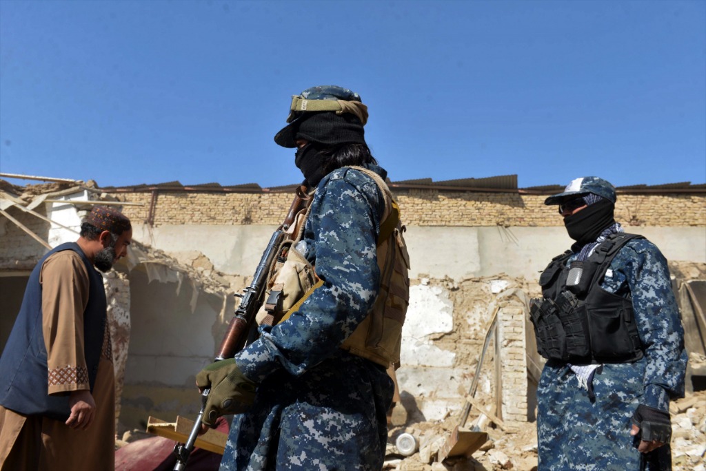 2021年11月15日,阿富汗塔利班成员在坎大哈查看打击“伊斯兰国”武装分子行动后受损的房屋。新华社发(萨瑙拉摄)