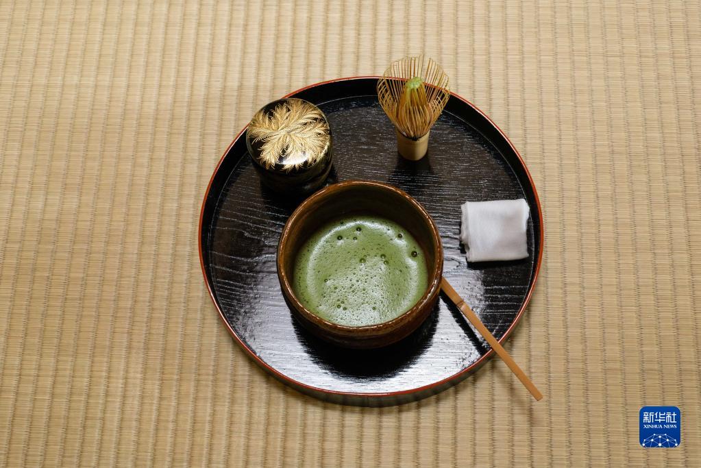 这是5月15日在日本埼玉县入间市里千家流派茶道教授浅见宗重家拍摄的一碗制作完成的抹茶。