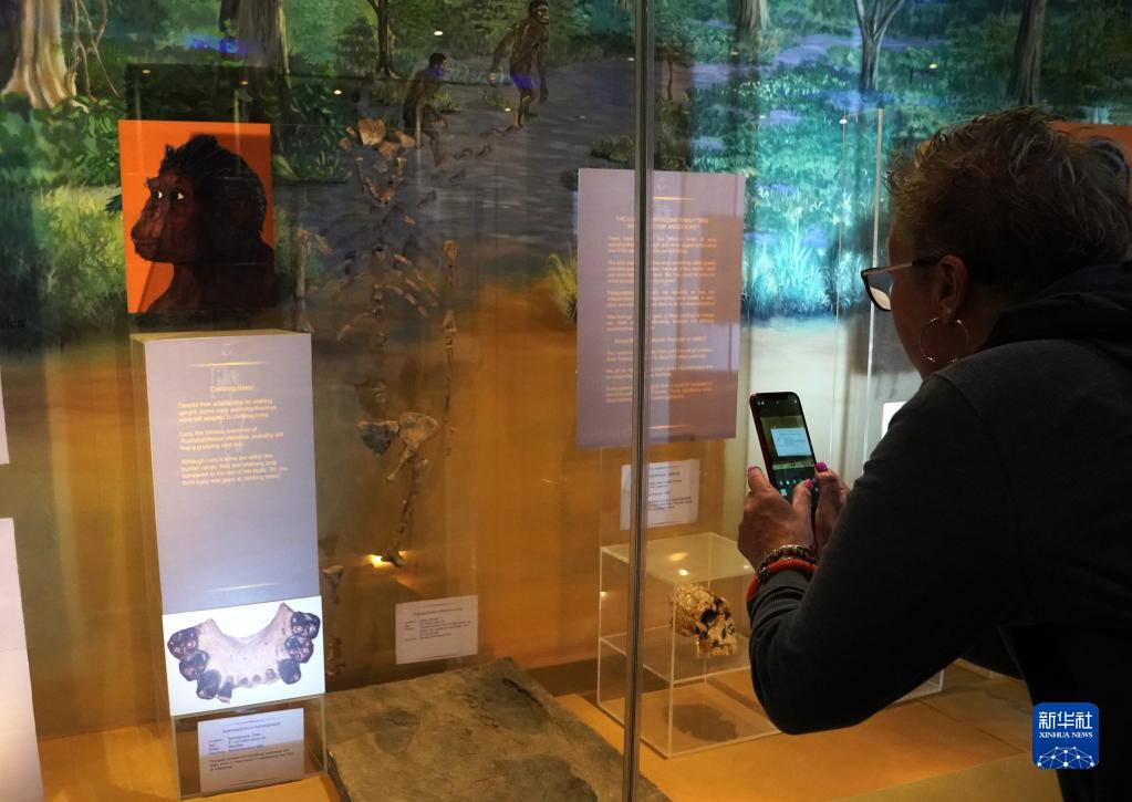 5月16日,一名游客在内罗毕国家博物馆拍摄320万年前非洲阿法南方古猿“露西”骨架。
