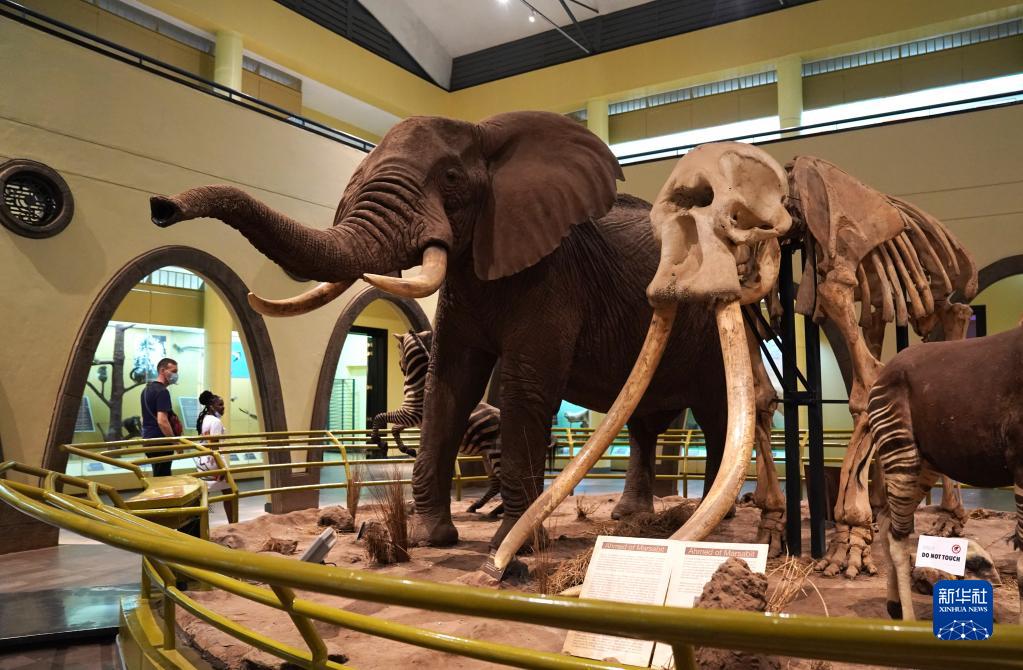 这是2022年3月17日在内罗毕国家博物馆拍摄的哺乳动物大厅。大厅里展示有大象“艾哈迈德”的骨架(右)。“艾哈迈德”因其大而精美的象牙而闻名于世,1974年被发现死亡,终年55岁。