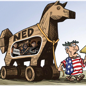 NED自称“对别国民主提供支援”的“非政府组织”,实际上是拿国会钱、听白宫令,在世界各国开展颠覆破坏的“马前卒”“白手套”。