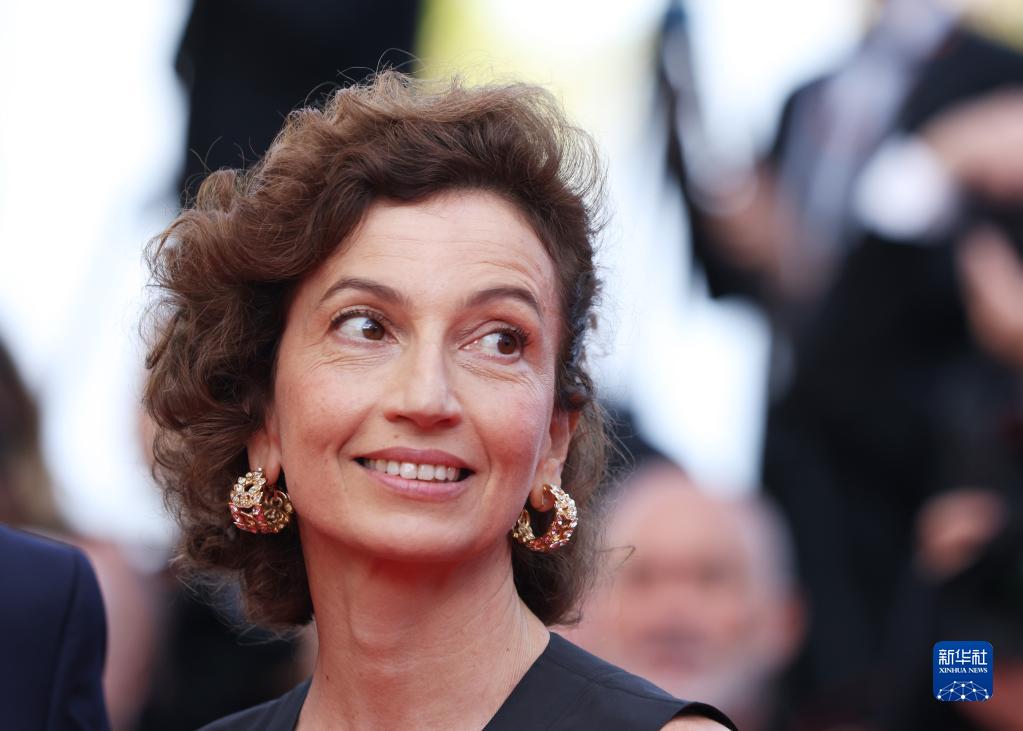 5月17日,在法国南部海滨小城戛纳,联合国教科文组织总干事阿祖莱踏上第75届戛纳国际电影节开幕式红毯。