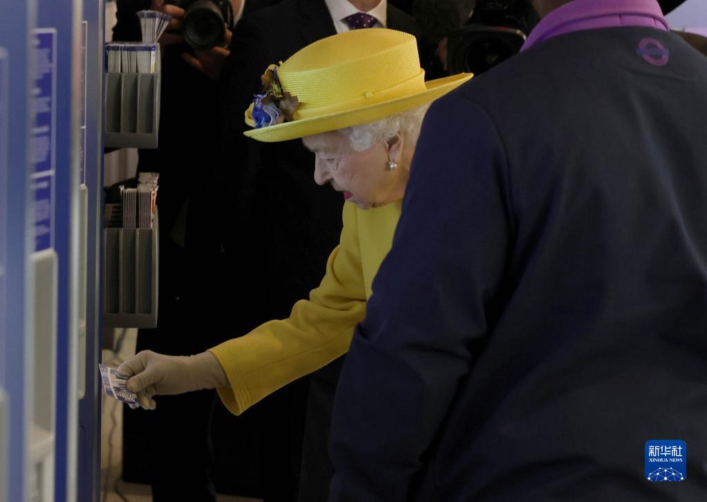 5月17日,在英国伦敦,英国女王伊丽莎白二世在伊丽莎白线帕丁顿站购买地铁卡。