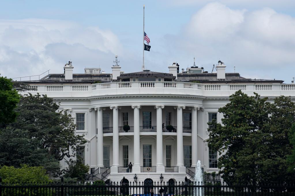 5月12日,美国华盛顿白宫降半旗悼念新冠逝者。美国总统拜登当日在白宫网站发表声明说:“今天,我们纪念一个悲剧性里程碑:100万美国人死于新冠。”新华社记者刘杰摄