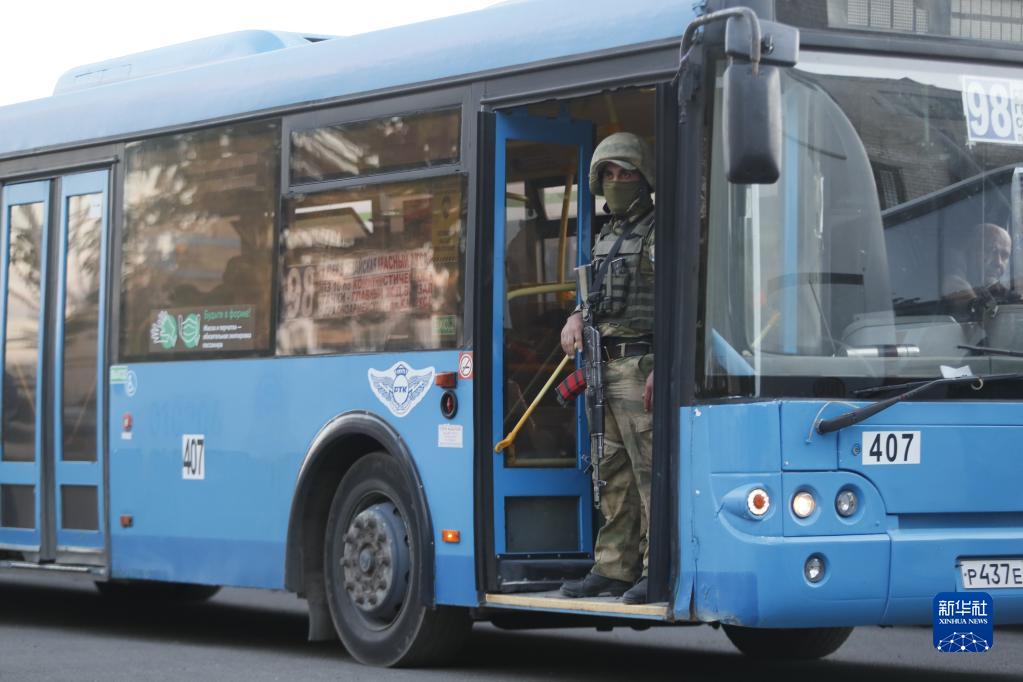 5月17日,在马里乌波尔,乌克兰武装人员在护送下乘坐巴士离开。