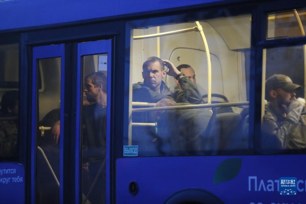 5月17日,在马里乌波尔,乌克兰武装人员乘坐巴士离开。