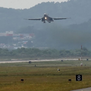 2016年9月21日,美军B-1B轰炸机准备在美军驻韩国乌山空军基地着陆。新华社/纽西斯通讯社
