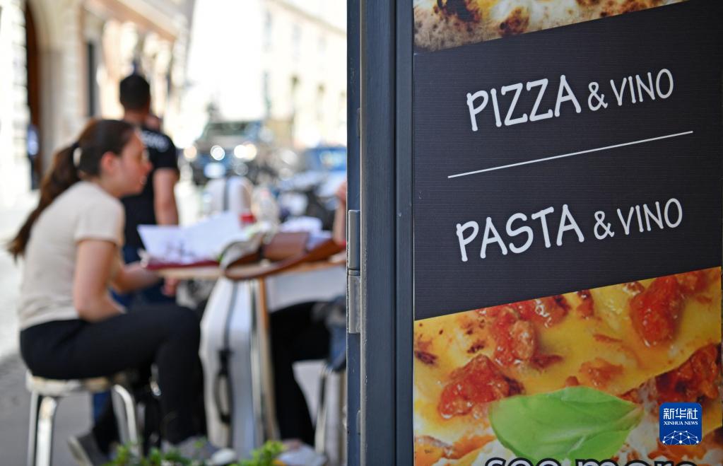 这是5月19日在意大利罗马拍摄的一家售卖意大利面食的餐厅招牌。