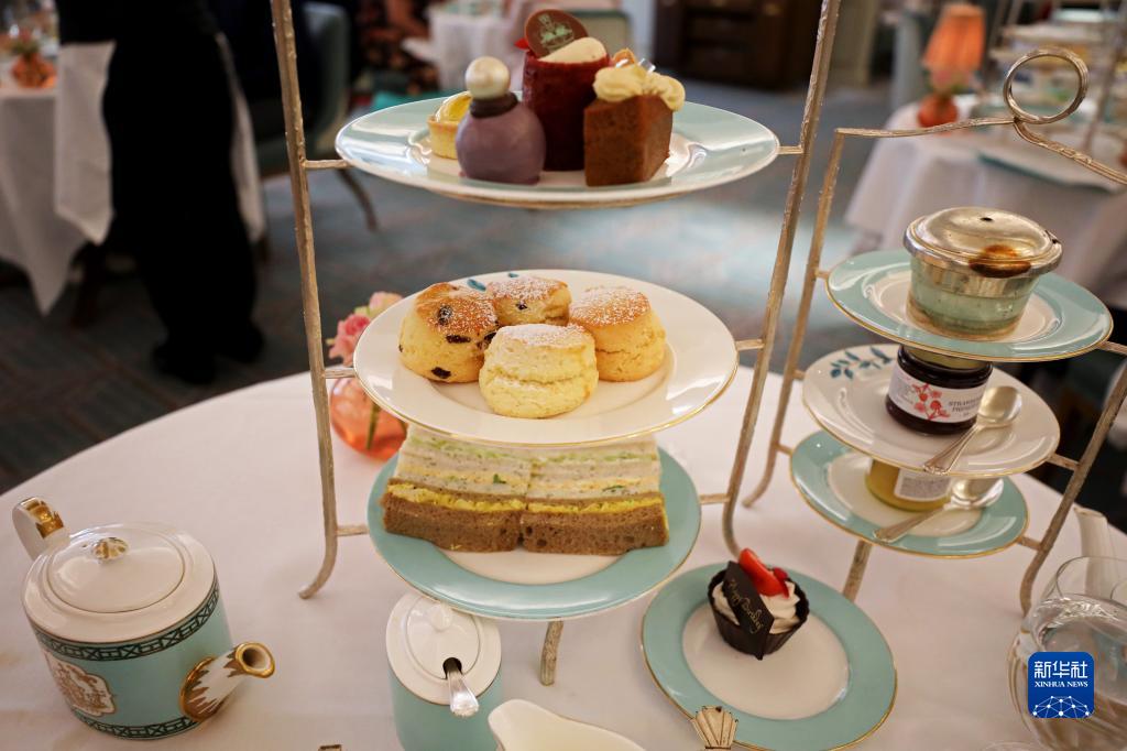这是5月19日在英国伦敦一家英式传统茶店福南梅森拍摄的英式下午茶。