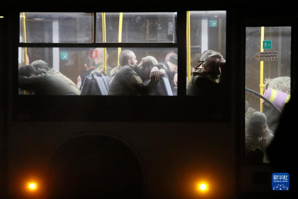 5月20日,载着乌克兰武装人员的巴士驶离马里乌波尔。新华社发(维克托 摄)