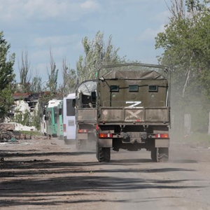 5月20日,乌克兰武装人员乘车离开马里乌波尔亚速钢铁厂。新华社/塔斯社