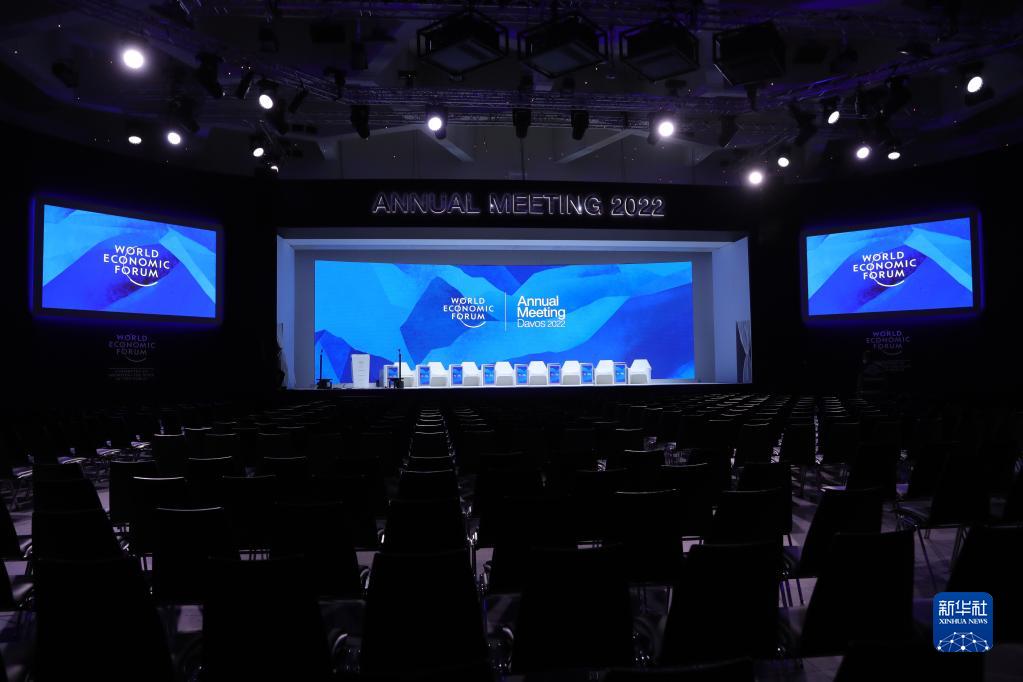 这是5月21日在瑞士达沃斯拍摄的世界经济论坛2022年年会会场。