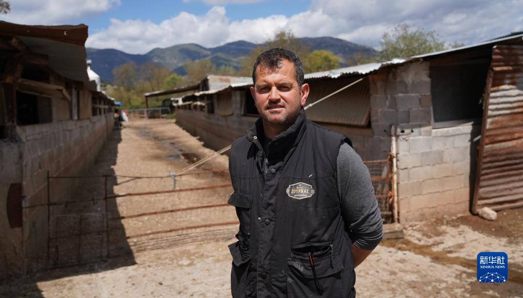4月20日,在希腊南部卡拉夫里塔镇附近村庄,农场主迪亚曼蒂斯·祖纳斯站在家庭农场里。新华社发(安吉洛斯·察齐斯摄)