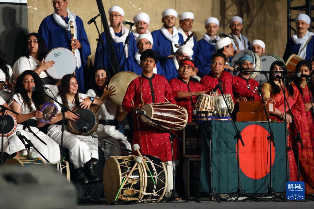 5月21日,艺术家在埃及首都开罗举行的第九届埃及国际鼓乐与传统艺术节开幕式上表演。