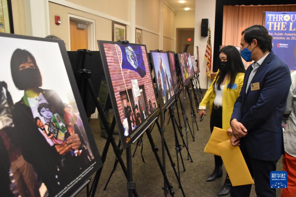 5月21日,在美国加利福尼亚州洛杉矶县阿卡迪亚市,人们参观“镜间:亚裔美国人的2021”摄影展。新华社发(曾慧摄)
