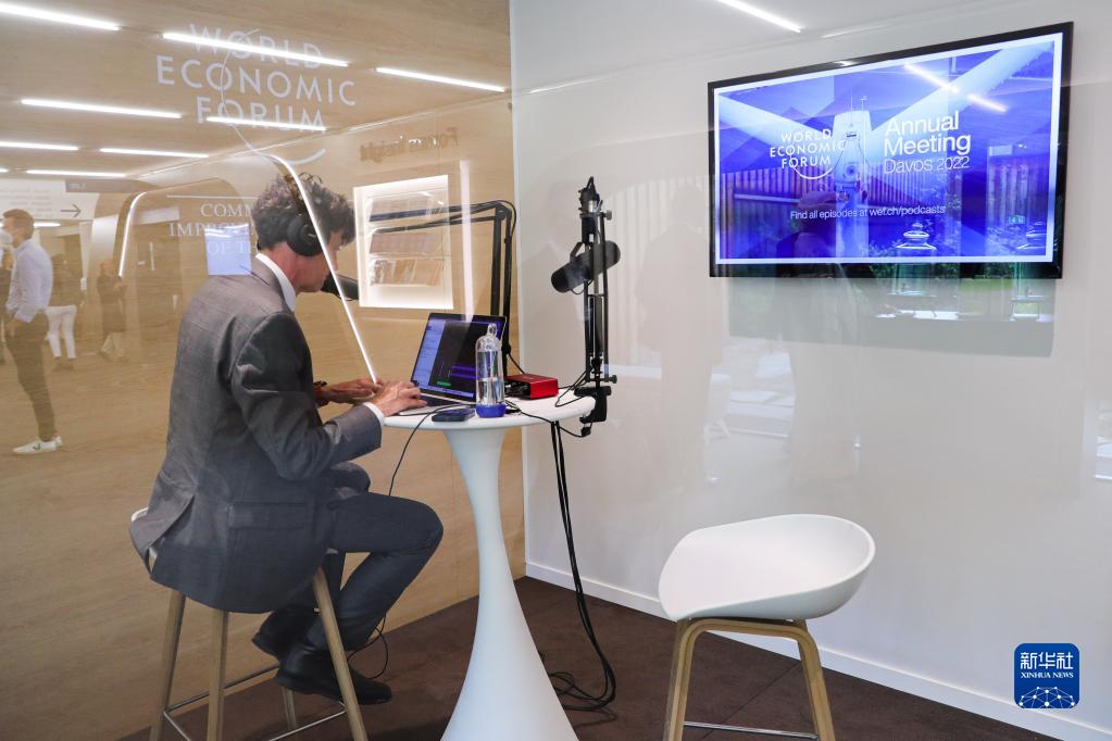 5月22日,一名媒体工作人员在瑞士达沃斯世界经济论坛年会会议中心工作。