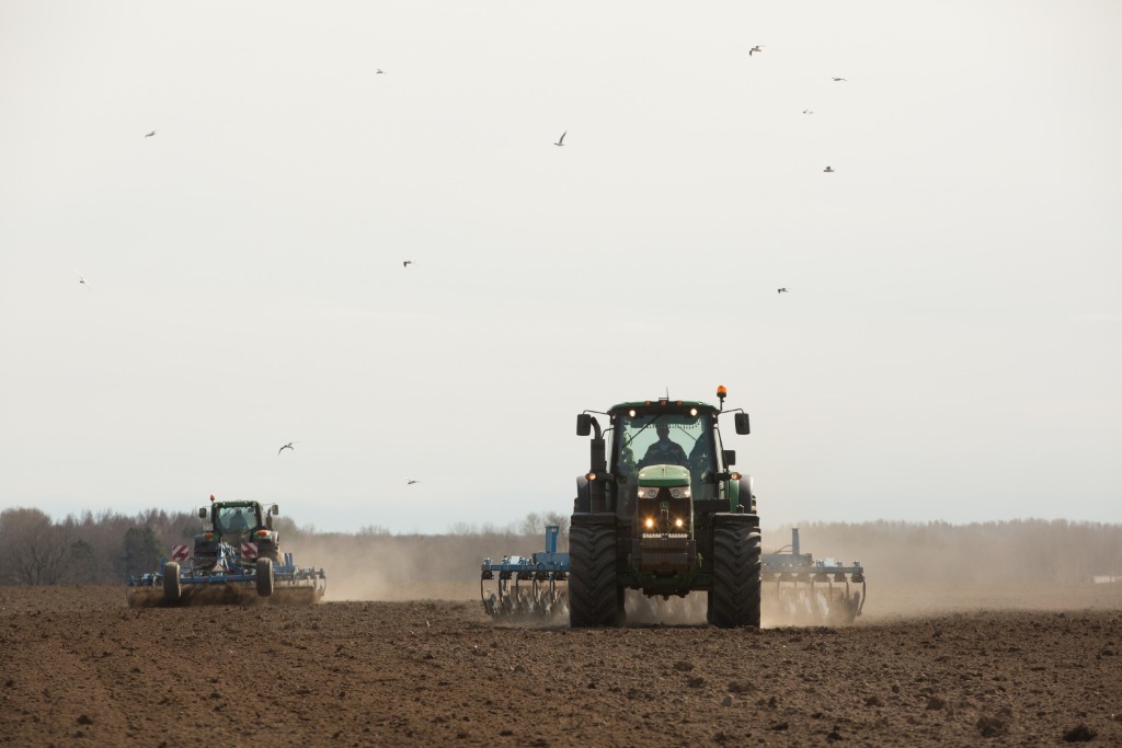 2021年4月15日,农民在俄罗斯列宁格勒州一农场内播种春小麦。新华社发(莫京娜摄)