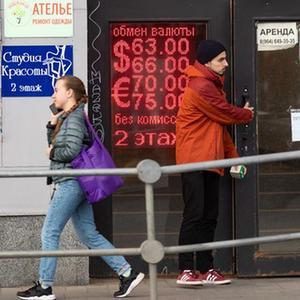 5月24日,在俄罗斯首都莫斯科,行人经过一家外汇兑换点。