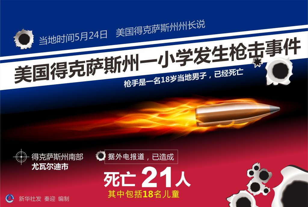 新华社休斯敦5月24日电 美国媒体报道说,得克萨斯州南部尤瓦尔迪市当地时间24日发生的小学枪击事件已造成至少18名儿童死亡。