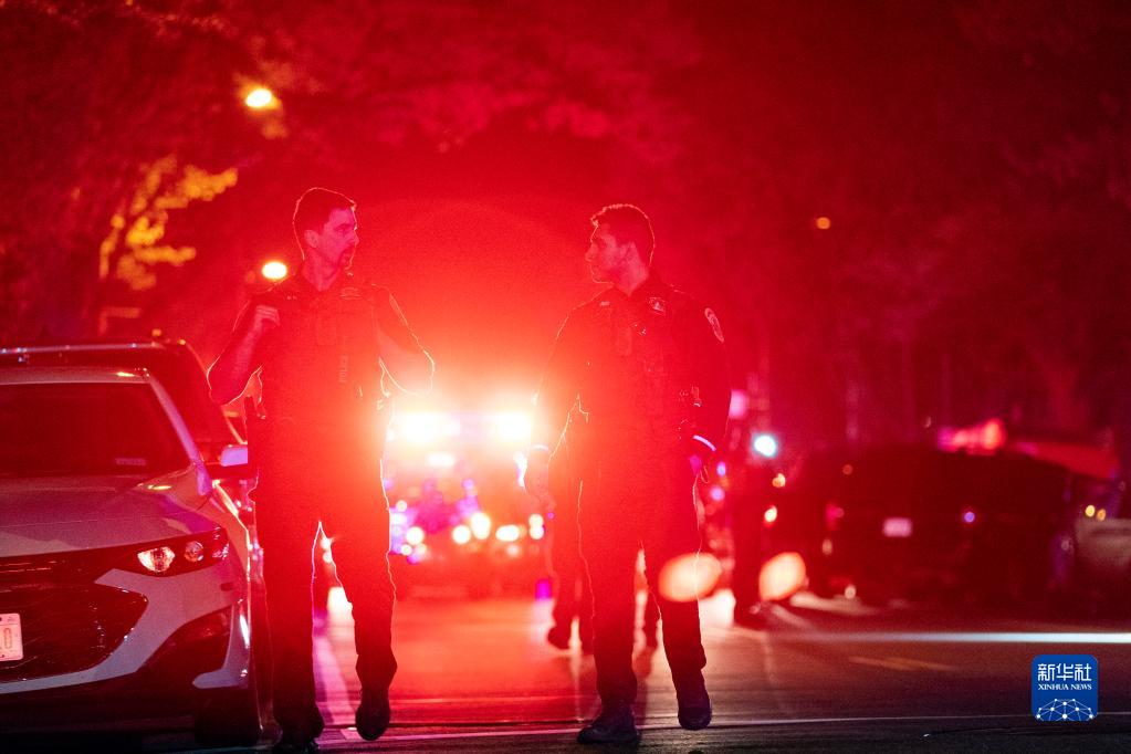 4月22日,在美国首都华盛顿,警察在枪击事件现场工作。当天,首都华盛顿西北部一处街区发生一起枪击事件,造成4人受伤,枪手随后自杀。警察在枪手住所找到6支枪及弹药等。