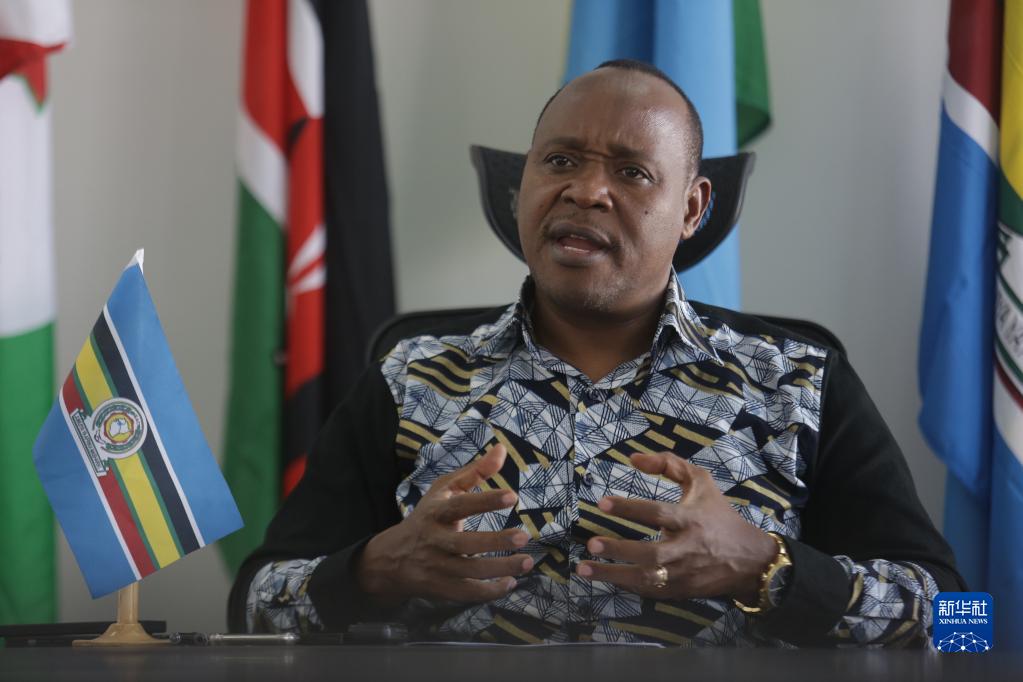 5月20日,东非共同体(东共体)秘书长马图基在位于坦桑尼亚阿鲁沙的东共体总部接受采访。新华社发(赫曼·伊曼努尔摄)
