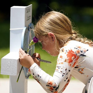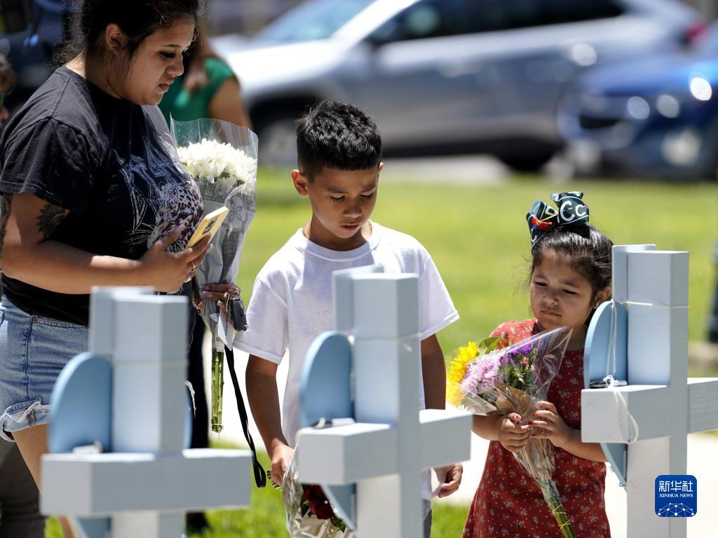 5月26日,在美国得克萨斯州南部尤瓦尔迪市,人们哀悼枪击事件遇害者。