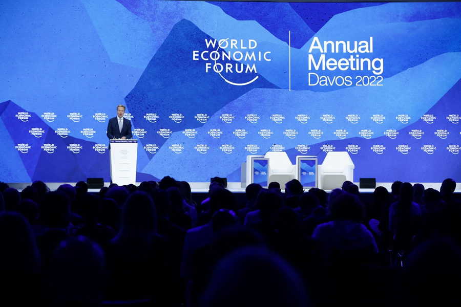 ↑5月26日,在瑞士达沃斯,世界经济论坛总裁博尔格·布伦德在世界经济论坛2022年年会上致闭幕辞。当天,世界经济论坛年会在瑞士小镇达沃斯落幕,本次年会聚焦了地缘政治风险、疫情大流行、气候变化、全球经济风险四大挑战。新华社记者 郑焕松 摄