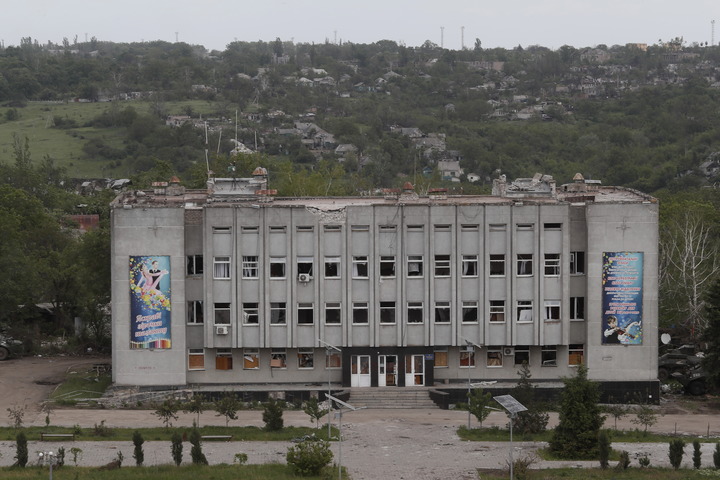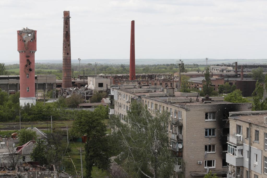 这是5月26日在卢甘斯克波帕斯纳亚拍摄的被损坏的建筑。新华社发(维克托摄)