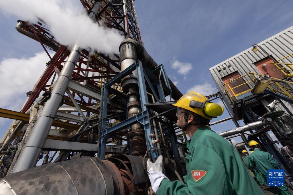 5月24日,一名工人在匈牙利萨兹豪隆包陶多瑙河炼油厂操作机器。