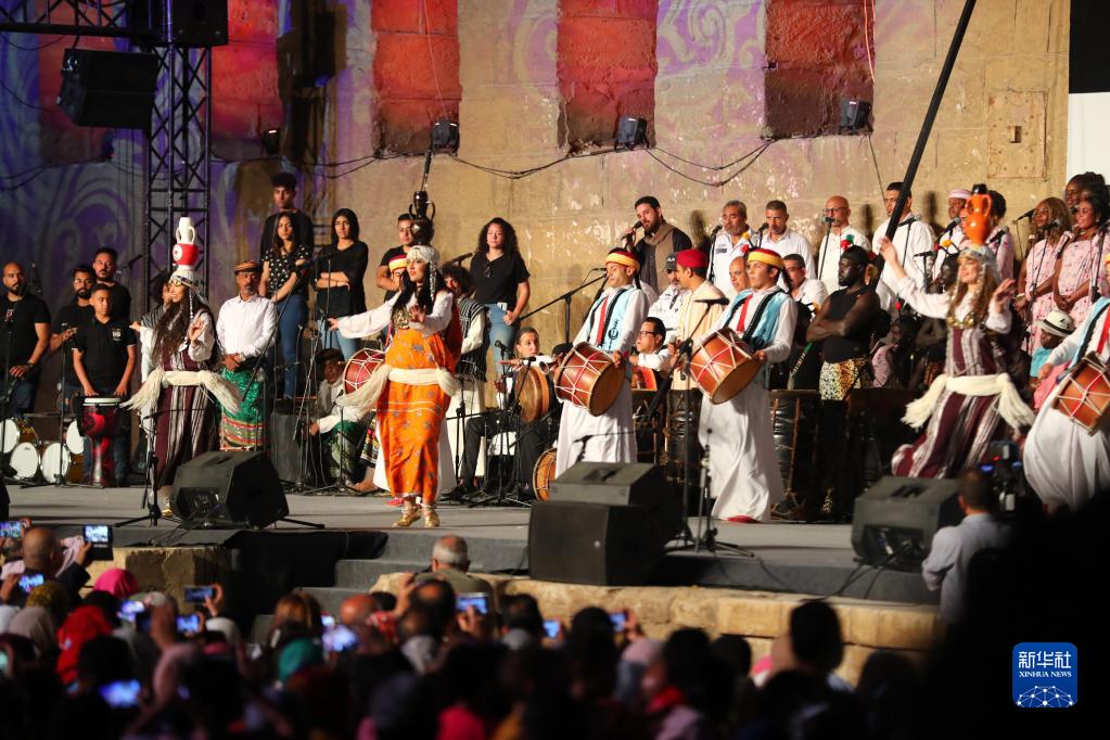 当日晚,第九届埃及国际鼓乐与传统艺术节在首都开罗萨拉丁城堡举行闭幕式。该艺术节21日开幕,来自43个国家和地区的艺术家们齐聚开罗,展示各地文化和鼓乐艺术。