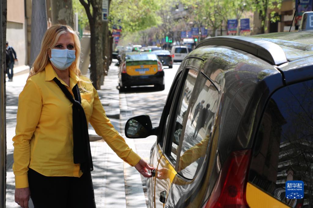 4月7日,在西班牙巴塞罗那,出租车司机洛拉·埃克斯波西托准备拉开出租车门。新华社发(伊斯梅尔·佩拉科拉摄)