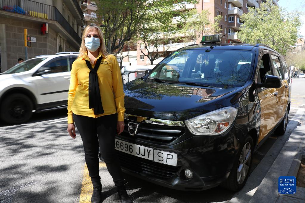 4月7日,在西班牙巴塞罗那,出租车司机洛拉·埃克斯波西托站在出租车旁。新华社发(伊斯梅尔·佩拉科拉摄)