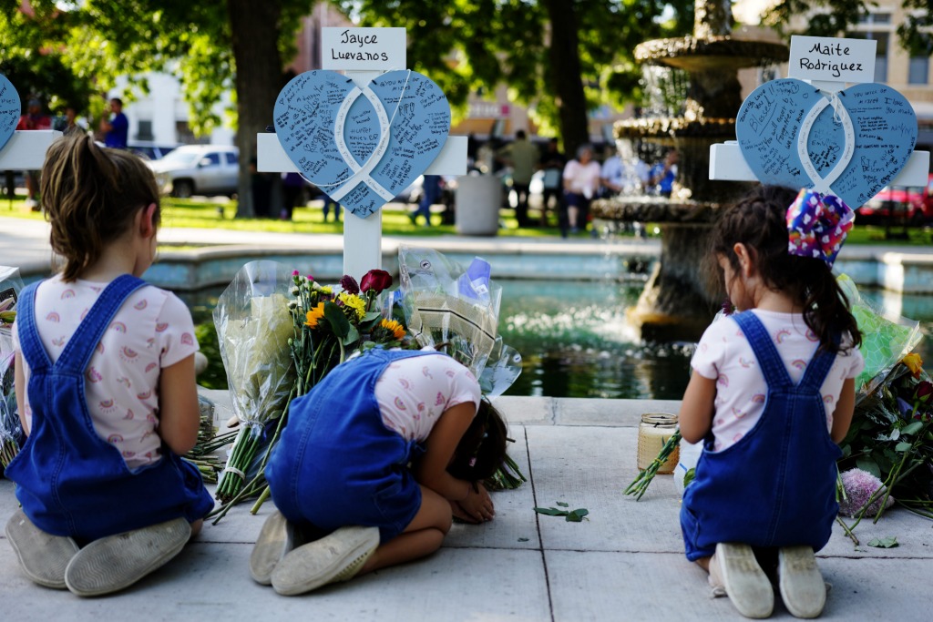 5月26日,在美国得克萨斯州南部尤瓦尔迪市,人们哀悼枪击事件遇害者。新华社记者吴晓凌摄